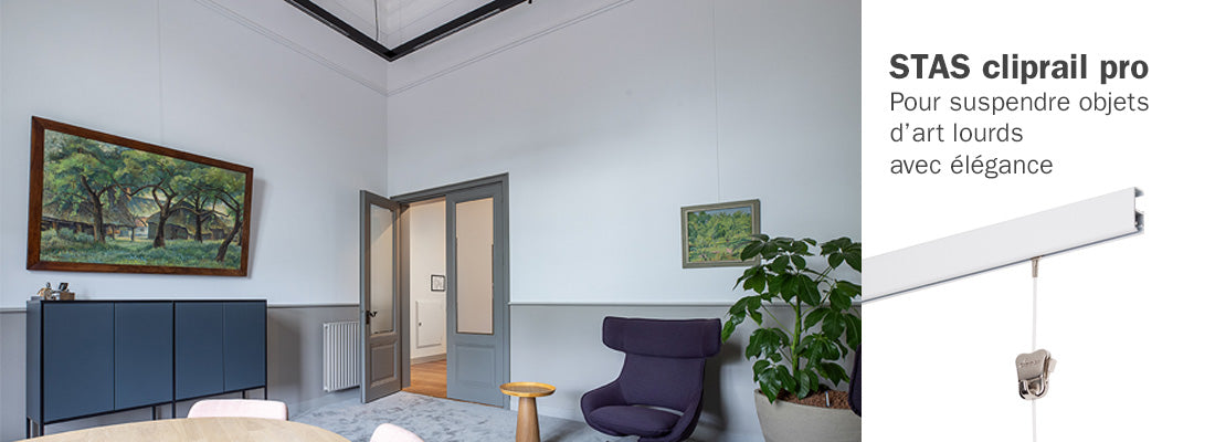 Transformez votre pièce avec les systèmes d'accrochage de tableaux STAS.